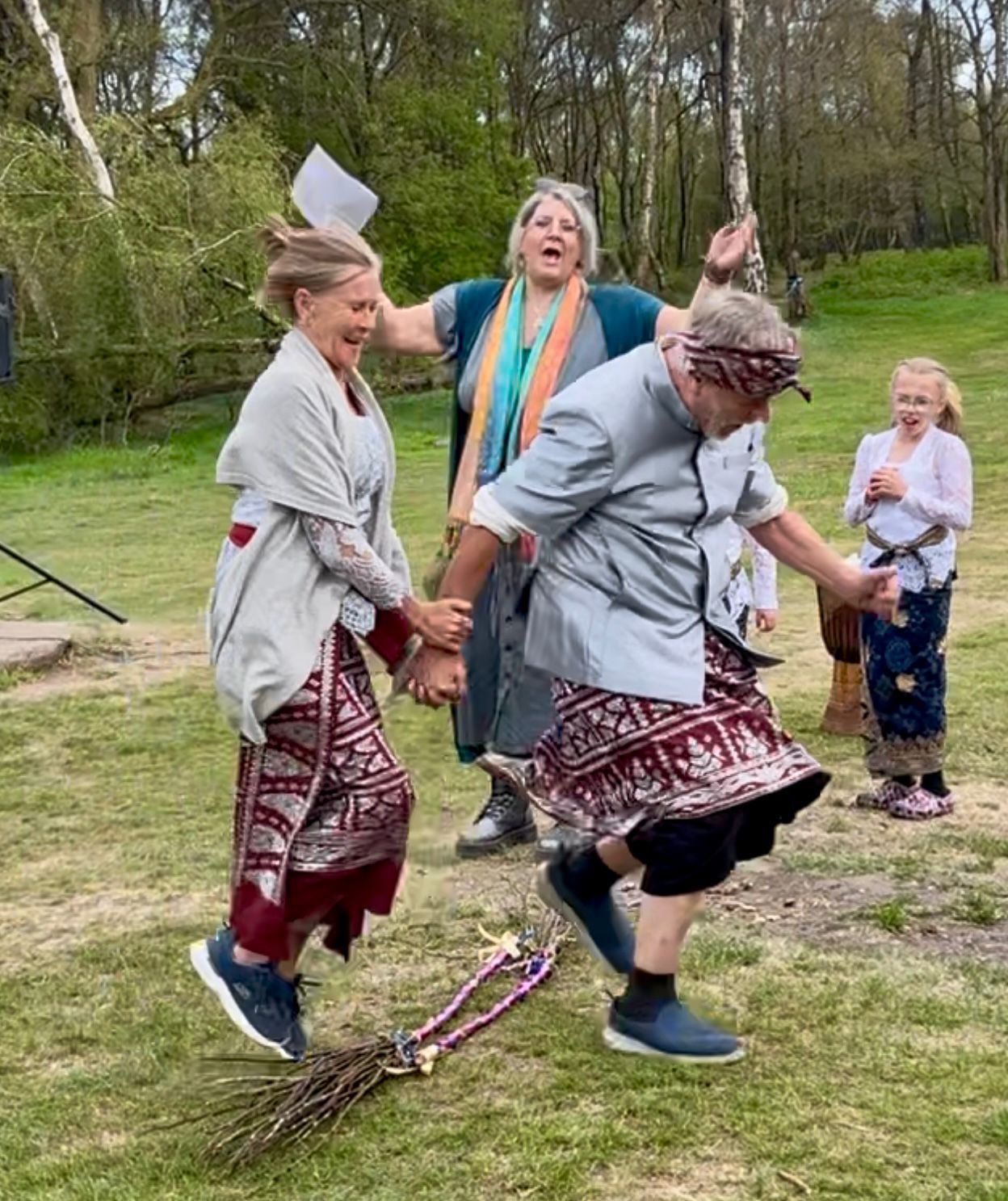 This handfasting was not only an intimate union but a collective experience, bringing together people from different counties. the couple themselves from england and sweden live in bail Indonseia and their presence in derbyshire combined the hindu tranditiaons with the pagan.